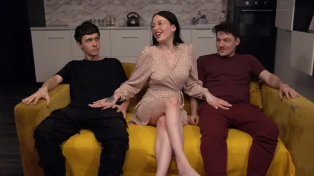 Anna Esman, a gorgeous brunette with big tits, is joined by her friend for a wild amateur threesome. They take turns giving him a sloppy blowjob and riding his cock. He pounds them both and gives them a double creampie.