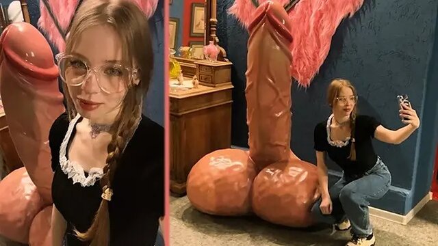 Hot Russian schoolgirl takes a huge cock deep in her throat