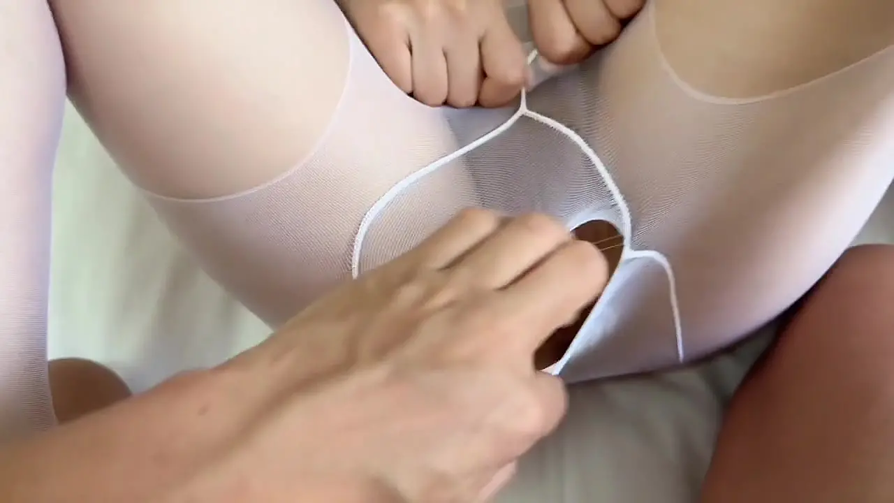 A perky-titted girl with pig tails and a mask gives a teasing hand job. She's fingering herself while looking seductively at the camera.