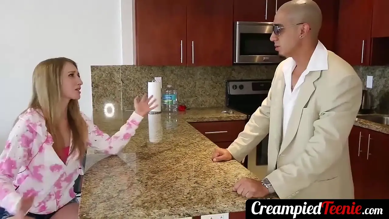 Young blonde babe Riley Reynolds takes a massive cock deep in her throat and rides it hard in cowgirl. He pounds her hard from behind in doggystyle and cums all over her pretty face. She receives creampied and takes the cash for her hot service.