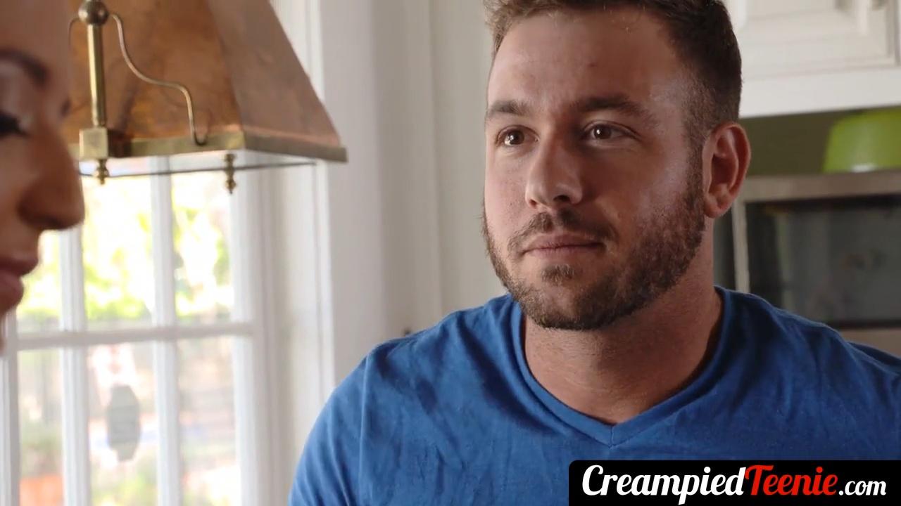 Avery Adair - Shaved Teen Brunette receives big dick creampie in cowgirl