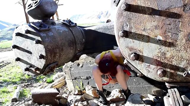Teen cosplayer Misty searches for Pokemon in the outdoor mines, her short shorts revealing her wetness as she struggles to hold her pee. She finally relieves herself, watching the stream of urine cascade onto the ground. Afterward, she resumes her search, completely unaware of the kinkiness of her public peeing.