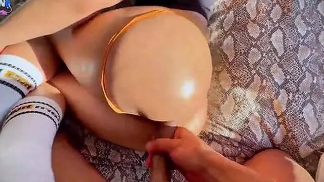 Hot MILF blonde catches her stepson stealing her thongs and chastises him by riding his hard dick in public. She performs a hardcore twerk while bouncing on him, making him groan with pleasure. He cums inside her, leaving a tasty creampie for her to enjoy.