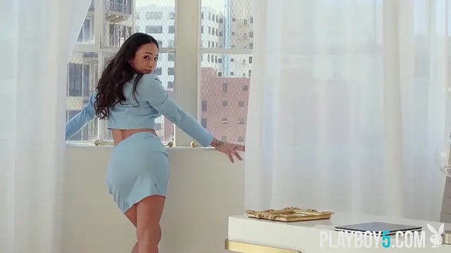 Petite teen secretary Kenz Kissah strips naked at the office